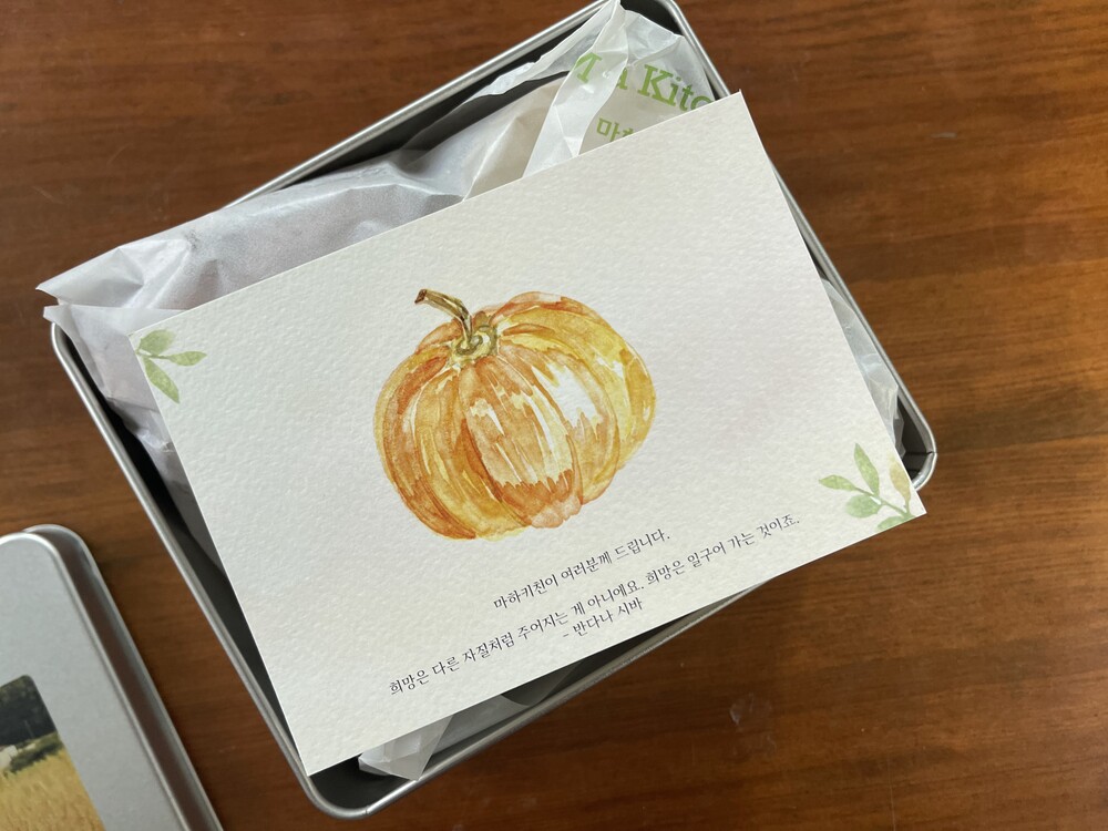 아래와 같이 감사 메시지 카드를 넣어드려요.