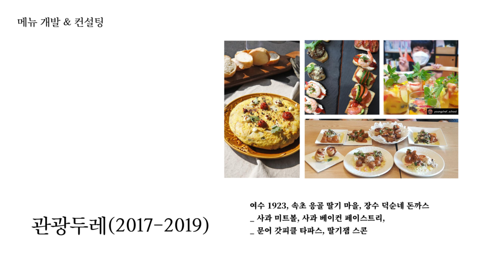 • 음식 관련 행사 : 마르쉐 <씨앗밥상> 요리사_ 주제 ‘토종감자’, 문토 생각하는 주방 리더, 컨셔스 그린밀, 원파인디너
